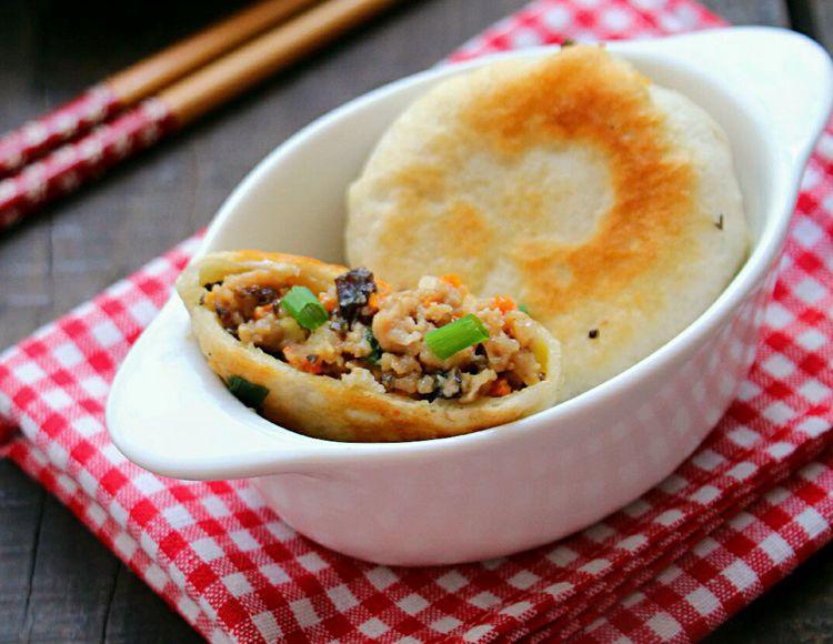 煎至两面金黄后,再加小半碗水,继续水煎。一来有肉馅,这样能保证肉馅全熟了,二来饼饼会比较柔软,宝宝更