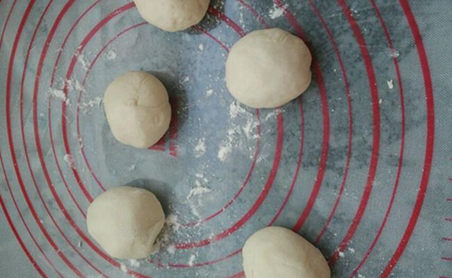 5、 切成小块,团圆, 擀扁一些。