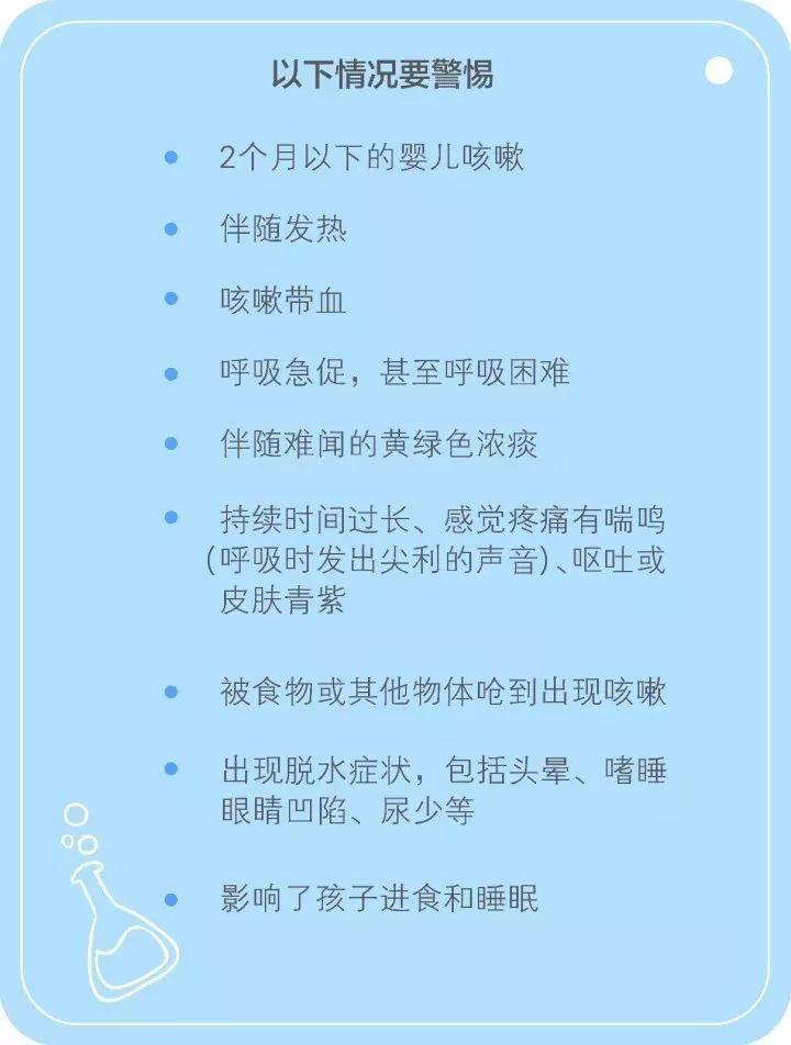 还有一些咳嗽是完全正常的:宝宝早上起床有几声轻轻的咳嗽,是清理晚上寄存在呼吸道的粘液;外出时冷空气刺激呼吸道黏膜,引起刺激性咳嗽。