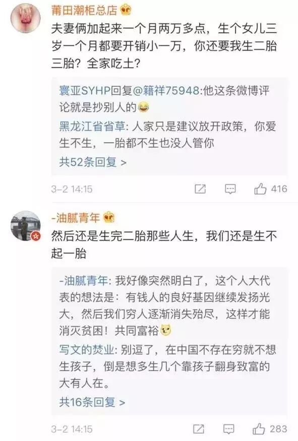 护士君碎碎念:其实国家的政策方针总归是为了咱们社会良性发展而定制的。我们不能单从自己角度想问题,可能单方面想谁都是对的,其实再想想我们的宝宝,中国未来之星,因为他们才延续中国伟大的征程。所以说,咱有能力而且想生,就多生;不想生或者精力有限,就少生,你说是不?