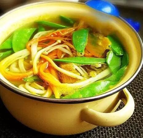 5.10分钟后加入荷兰豆,沸腾后加盐调味即可。