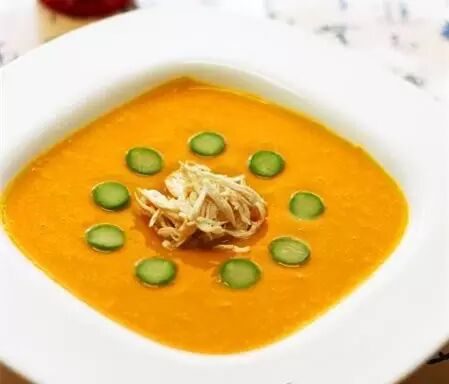 原料:南瓜,鸡脯肉,蒜泥,盐,淡奶,黄油。