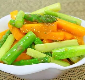 原料:芦笋,南瓜,彩椒,油、葱花、盐