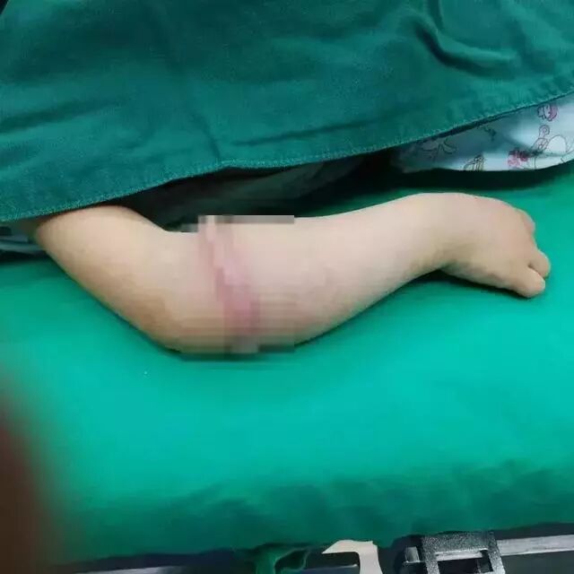 据宝宝护士了解到,四岁的小女孩是由爷爷奶奶看管,父母长期不在身边,也不知道从何时开始,手臂慢慢长出了一圈肉环,起初症状轻,家人都没留意,后来见越变越肿大,父母着急才来了医院就诊。