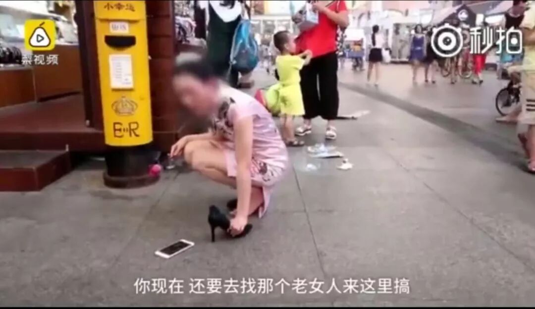 佛山一名女子,身穿粉色旗袍,蹲在地上打电话,只见她脱下一只高跟鞋,一边骂一边用高跟鞋拍打地面,后来越骂越伤心,最后放声哭起来,嘴里还念叨着: