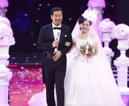 看到他们,张国立一身燕尾服,邓婕穿着白色的婚纱,手挽手走过红毯。