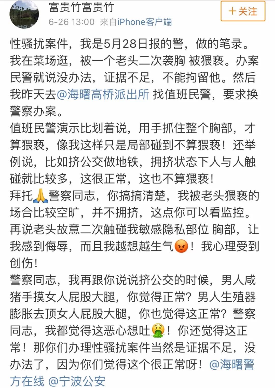 然而对这位十九岁的少女来说,这些让她恐惧的骚扰还不是最可怕的。她最后选择轻生之举,在我眼里并不是脆弱,反而证明了她是一个追求公平正义的强者。