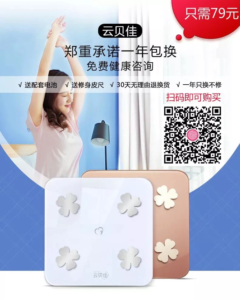 那么日常我们如何快速测检我们的体脂呢?此时你急需一款云贝佳智能体脂秤即可,全方位健康数据评估,快速而精确,只需赤脚上秤5秒钟即可。即刻“秤”出健康标准体脂,享受在线医生免费咨询服务。