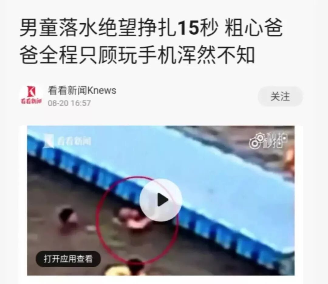 更可气的是,下面这位爸爸,儿子在水中绝望挣扎时,他也一直在玩手机。