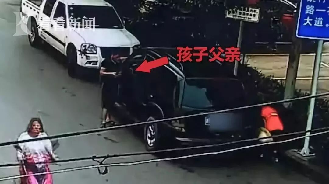 事发时,爸爸也刚下车,正在车旁玩手机,没发现儿子从车上下来。
