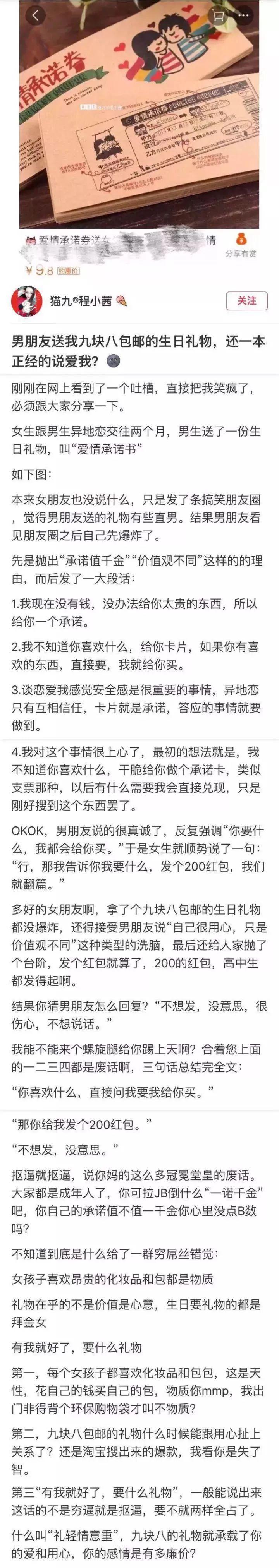 “男朋友送我九块八包邮的生日礼物,还一本正经地说爱我?”