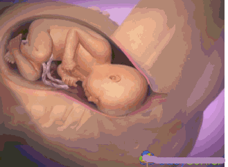 4、子宫开始有规律的收缩,这种收缩带来的就是剧痛,子宫颈胀大, 分开,胎儿宝宝也很努力的想冲出生殖道 ,分娩马上要开始了。