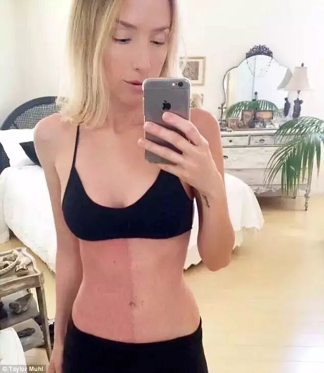 这是为啥呢?原来她的身体,跟其他人有些不一样。从出生时开始,Taylor的左侧胸部和肚子上的皮肤,就是暗红色。右侧皮肤是正常肤色。两边的皮肤对比明显,泾渭分明。