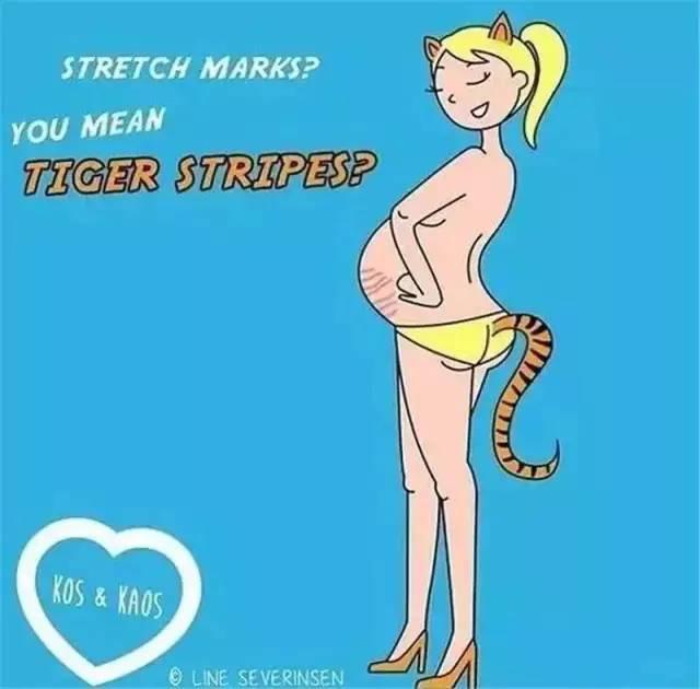 14、妊娠纹长的和老虎斑似的,哈哈,我是一只老虎,宝宝,你怕不怕啊?