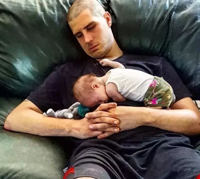 所以那天他躺在沙发上看电视,就把还不满一个月的宝宝放在了自己胸口上,觉得能时刻都照顾着他。