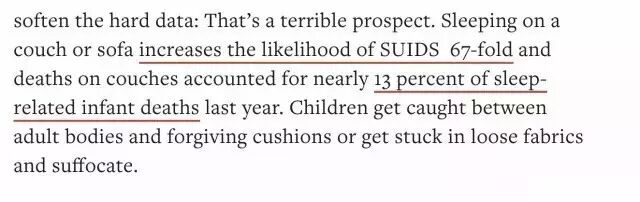 因睡在沙发上而SIDS莫名死亡的几率增加67倍,