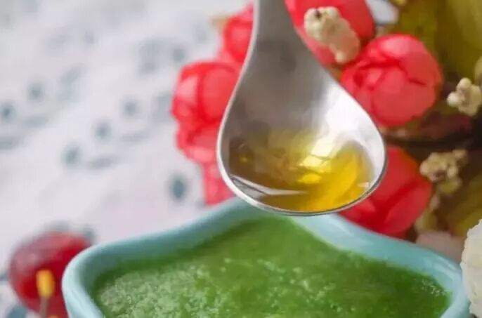 7、红菜苔泥出炉了,记得要加点食用油!食用油能促进红菜苔中脂溶维生素的吸收;