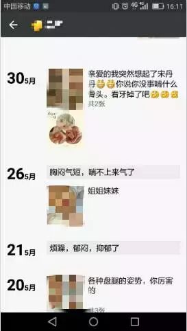 小青朋友圈已经表现出不好的状态: