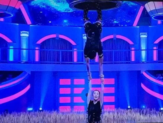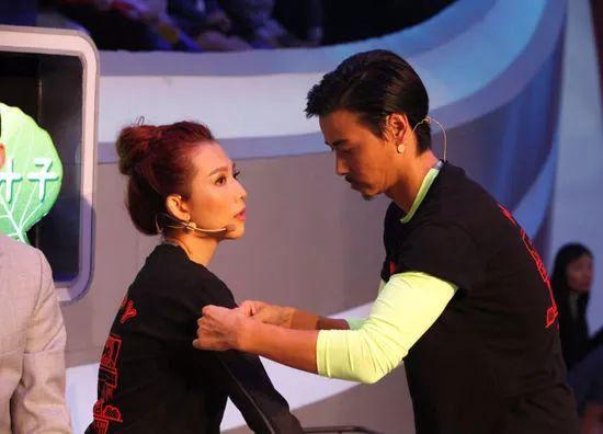 记得节目中有一个环节,张晋要双手拉住蔡少芬,以倒挂的姿势悬在半空中,很多人都猜测受伤的张晋不能坚持下来,但是,这个不服输的男人撑住了。