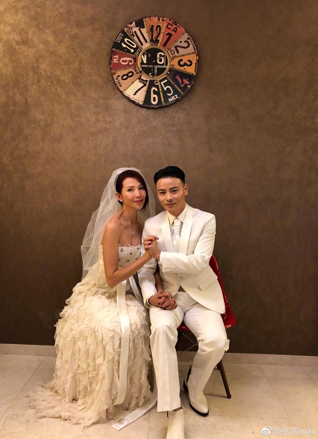 结婚十周年,两人一起穿起了当年结婚时的礼服,娘娘依然少女感十足,而张晋也散发出成熟男人的帅气。