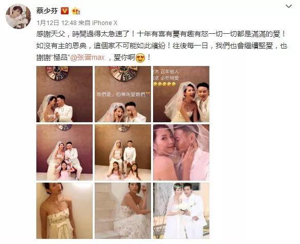 1月12日是两人结婚十周年的日子,“炫夫狂魔”蔡少芬又开始了她的炫爱日记。