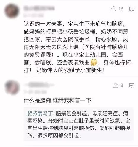 关于脑瘫患儿,你怎么看?来看看网友们的心声......