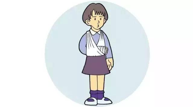 Step 2:如果是肘关节脱臼,妈咪可以将大围巾折成三角形,将宝宝的手臂悬挂在胸前。肩关节脱臼可以用绷带、布条等将脱臼的胳膊与躯干捆绑固定。千万不要强行把孩子的手臂拉直,也不要试图复位关节。