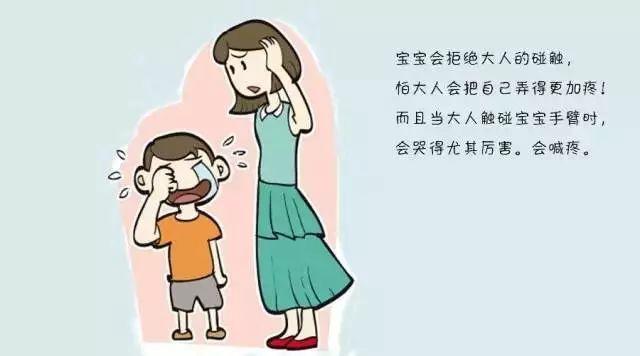 8、如果宝宝有脱臼历史,很可能会反复发生。那么大人跟宝宝玩耍或是进行身体接触时,都要避免在相同部位用力过大。