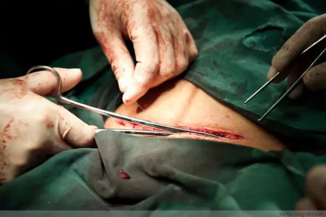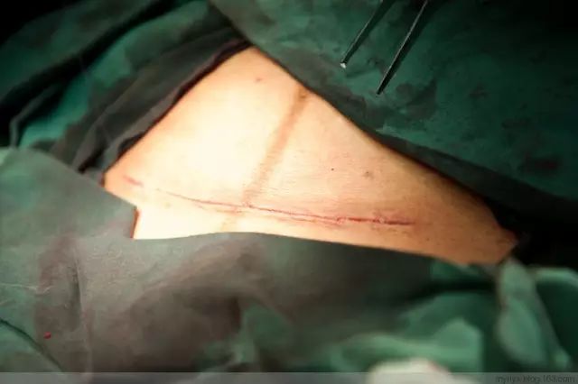 好端端的肚皮就这样被拉开了一条长长的大口子,口子的长度视胎儿的头部尺寸而定,要精确到毫米