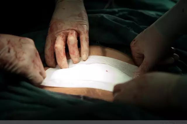用纱布把伤口给盖住,避免感染,到此,这台剖腹产手术圆满结束。