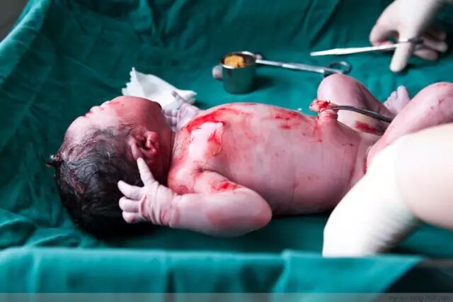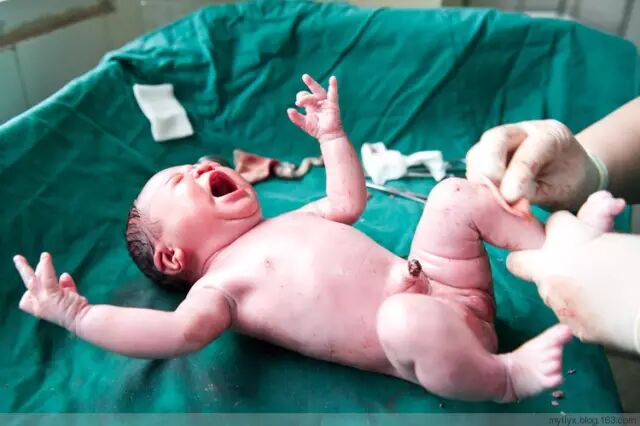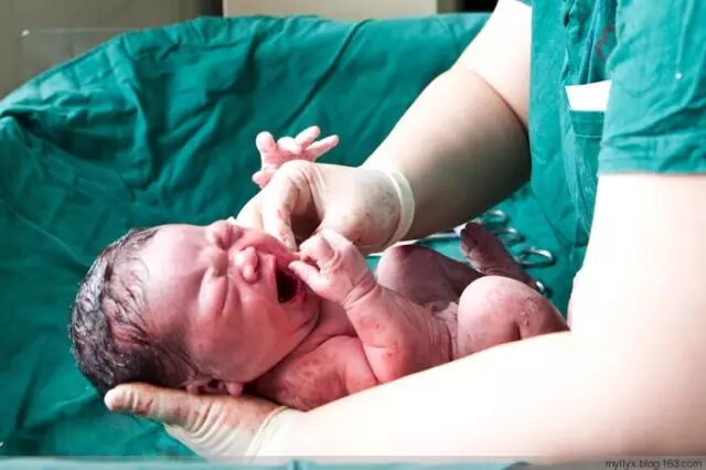 宝宝刚一出来就哇哇哇地哭了起来,声音洪亮,回荡在整个产房,听了让人感到十分振奋