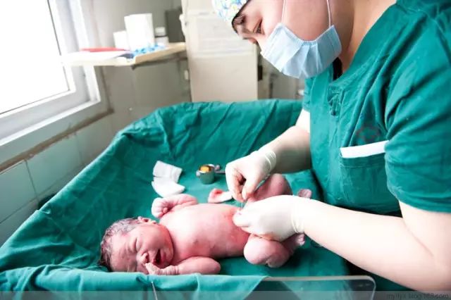 护士给她处理脐带