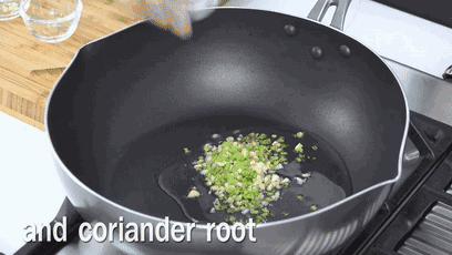1、加热食用油,爆香蒜末、葱白和姜片。