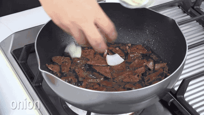 3、加入洋葱,炒一会,加生抽、盐和白糖和鸡精调味,炒3-5分钟就可以吃了。