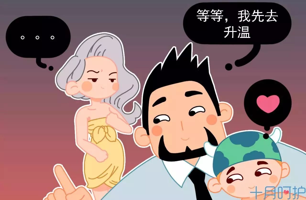 像这样,在洗澡前让宝爸打开浴室的取暖设备,等到室内温度升至20℃左右再进去。水温在37℃左右就行,时间也要在5—10分钟。淋浴最好,洗完后以你最快的速度穿好衣服,擦干头发,不要感冒了。
