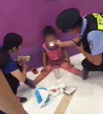 还有一名穿着粉色上衣的小孩。