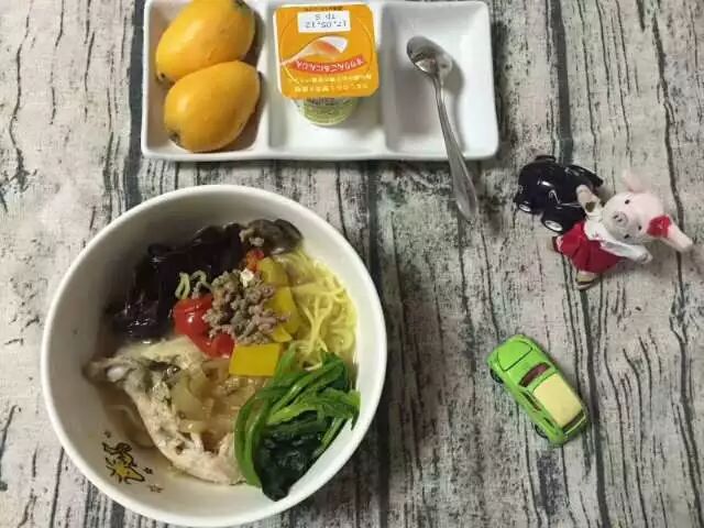 午餐:蔬菜鸡汤面、枇杷、酸奶(维生素、蛋白质、矿物质为主)