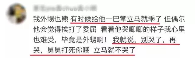 可他为什么还是如此肆意妄为?帖子中有一个细节:当这位妹子狠狠地修理了熊孩子之后,妹子的姑姑抱怨说:把孩子的背都打肿了,膝盖也青了。