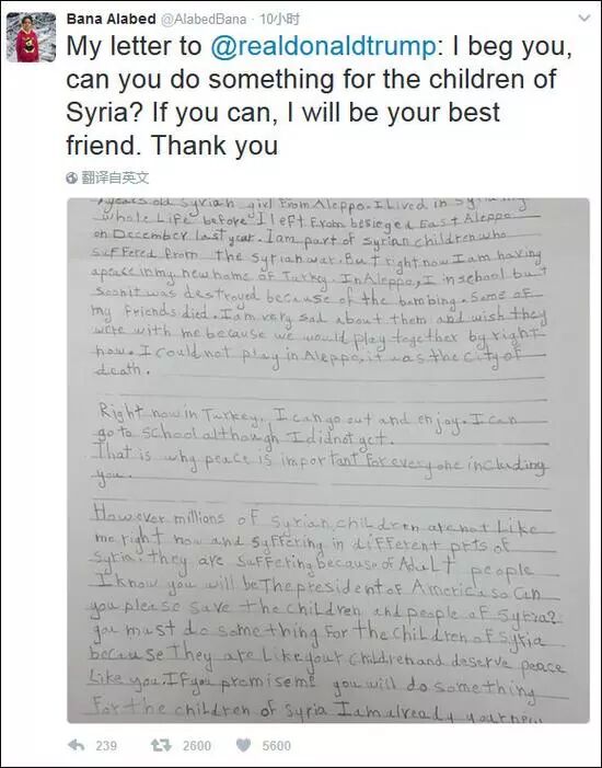 两年前,一个7岁的叙利亚女孩给美国总统特朗普写了封信,恳请他为叙利亚的孩子做点什么,“因为他们就像是你的孩子,应该像你一样得到和平。”