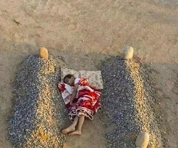 本该在温暖的床上做着甜美的梦,他们却只能躺在父母双亲的坟墓中间,试图找到一点点依靠。