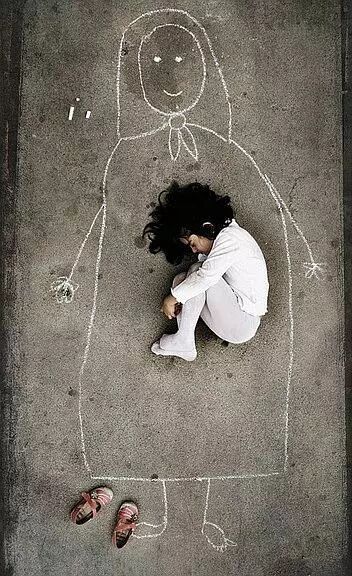 本该是对着父母撒娇的他们,却不得不在地上画一个妈妈,假装躺在她的怀抱。